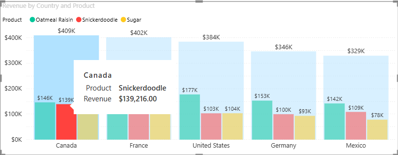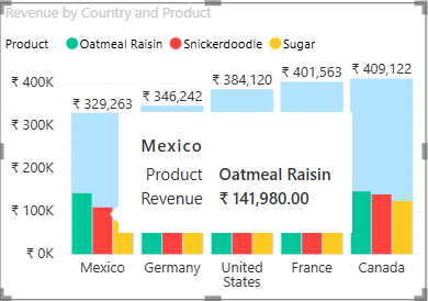 - Comprehensive Tooltip Integration: The visual supports both standard Power BI tooltips (displaying field values) and enhanced tooltip pages (custom report pages displayed on hover). Tooltips provide additional context without cluttering the main visualization, supporting detailed data exploration.