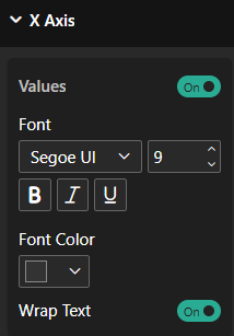 - X-Axis (Categories) – Expanding ‘X-Axis’ provides the following formatting options: