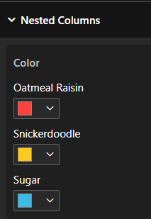- Nested Columns – Expanding ‘Nested Columns’ provides the following formatting options: