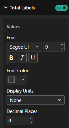 - Total Labels – Expanding ‘Total Labels’ provides the following formatting options: