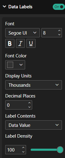 - Data Labels – Expanding ‘Data Labels’ provides the following formatting options
