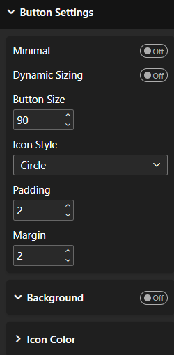 - Dynamic Sizing – Auto-scale buttons to visual space (Off for fixed sizes)